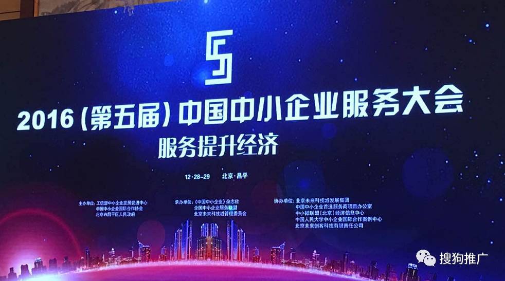 2016年第五届中小企业服务商大会在北京隆重开幕。为推动全国中小企业服务体系建设,进一步完善专业化、系列化、社会化和市场化的中小企业服务格局,全力营造中小企业良好服务氛围,主办方工信部中小企业发展促进中心,在大会上发布了“2016中国中小企业首选服务商“名录,凭借今年在全国各地的区域深耕以及为我国中小企业提供多元智能化的营销服务,搜狗成功入选!